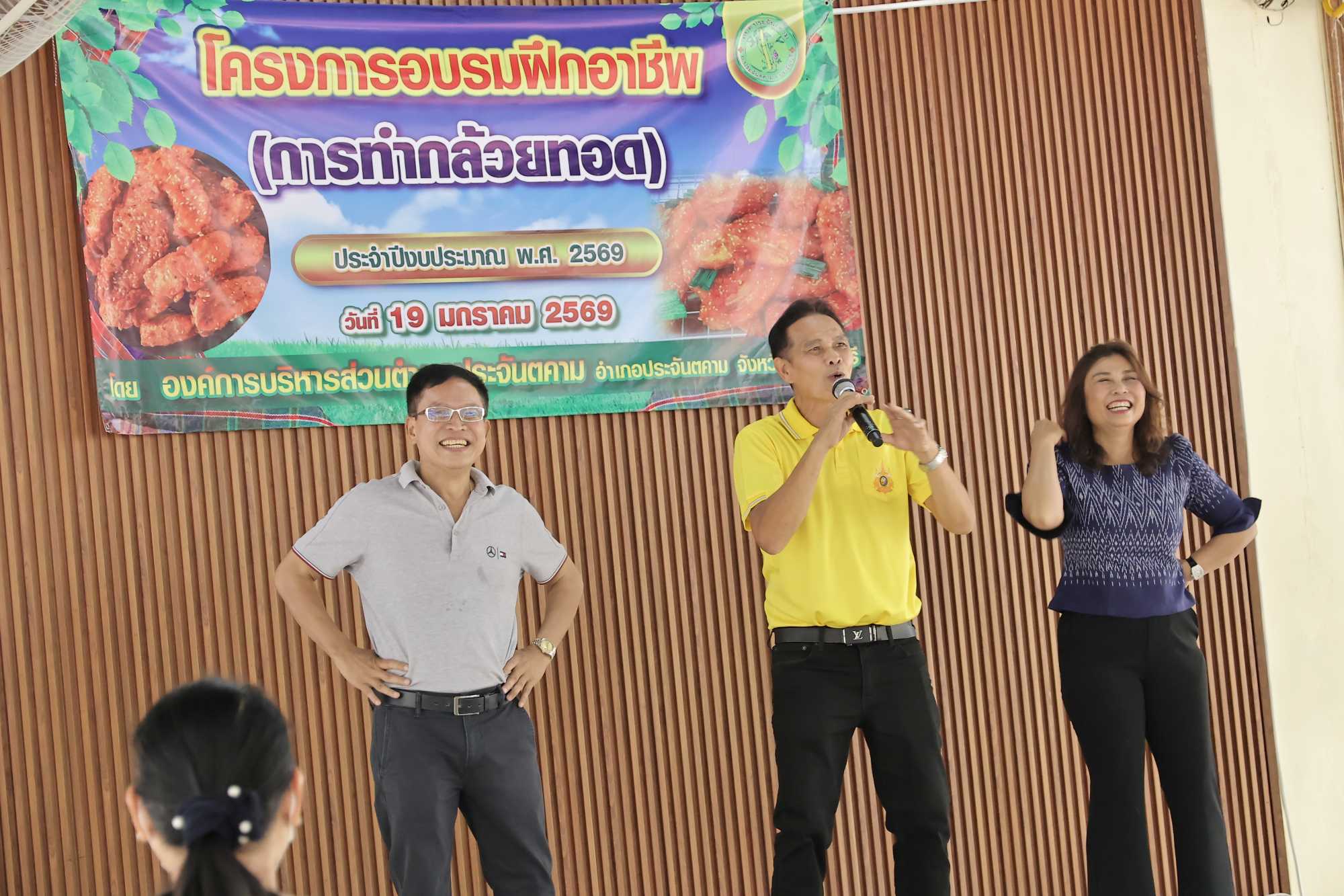 องค์การบริหารส่วนตำบลประจันตคาม โดย นางจรีพร โชติรัตน์ นายกองค์การบริหารส่วนตำบลประจันตคาม และ พ.ต.ต.สมพร หลีกชั่ว รองนายกองค์การบริหารส่วนตำบลประจันตคาม ร่วมเป็นประธานพิธีเปิด โครงการอบรมฝึกอาชีพ การทำกล้วยทอด ประจำปีงบประมาณ พ.ศ.2569 ณ องค์การบริหารส่วนตำบลประจันตคาม อำเภอประจันตคาม จังหวัดปราจีนบุรี
