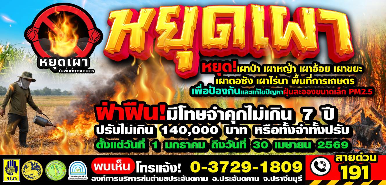 มาตรการ ห้ามมิให้มีการเผาในที่โล่งทุกชนิด ในพื้นที่ชุมชน ห้ามมิให้มีการเผาขยะ เศษกิ่งไม้ใบไม้ทุกชนิด