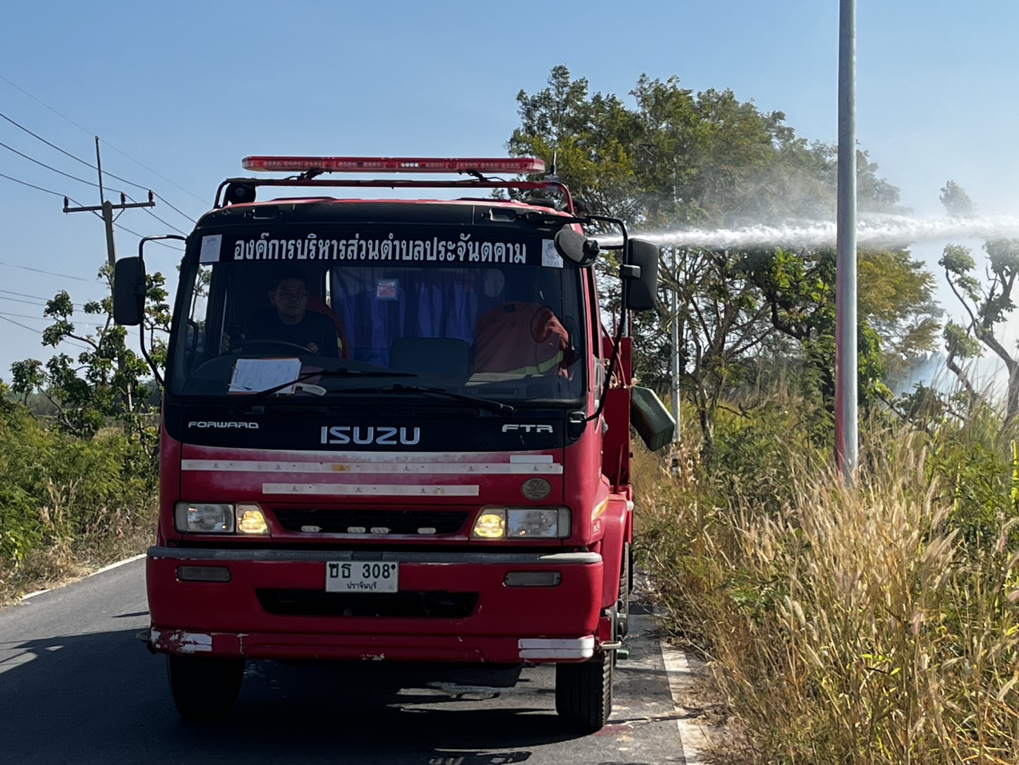 เจ้าหน้าที่แผนกฝ่ายงานป้องกันและบรรเทาสาธารณะภัยของอบต.ประจันตคามได้นำรถน้ำออกระงับเหตุเพลิงไหม้ในพื้นที่ หมู่ที่ 6 ตำบลประจันตคาม อำเภอประจันตคาม จ.ปราจีนบุรี