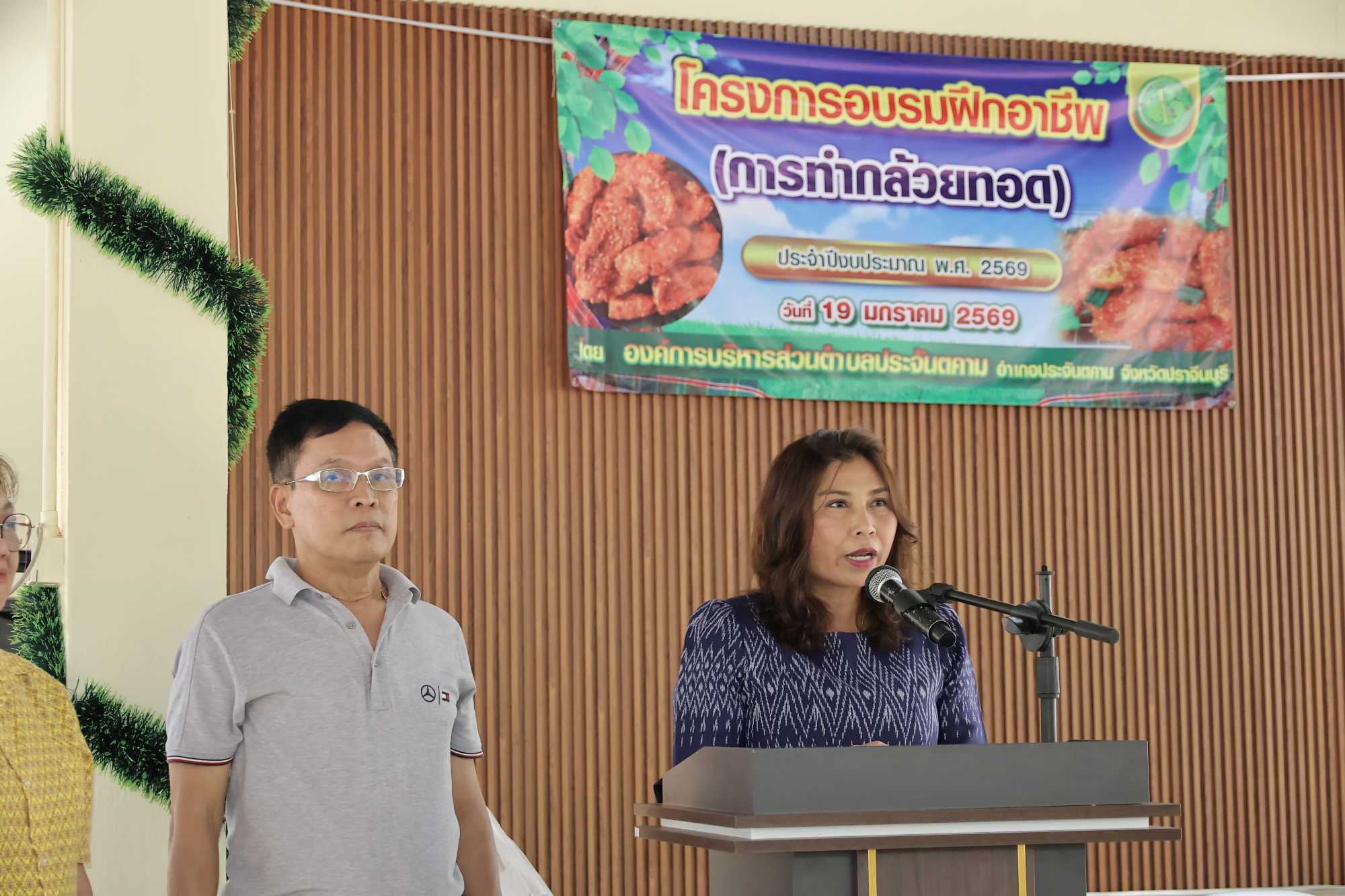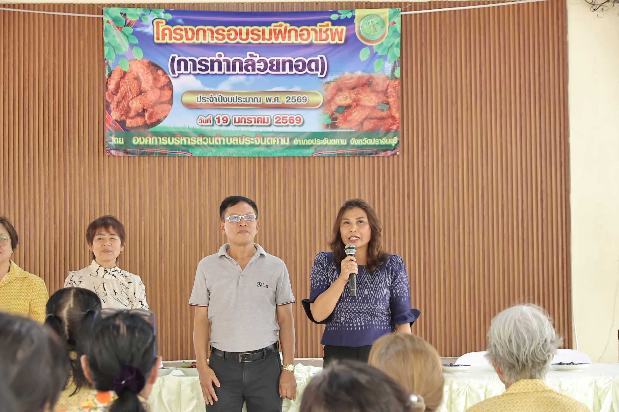 องค์การบริหารส่วนตำบลประจันตคาม โดย นางจรีพร โชติรัตน์ นายกองค์การบริหารส่วนตำบลประจันตคาม และ พ.ต.ต.สมพร หลีกชั่ว รองนายกองค์การบริหารส่วนตำบลประจันตคาม ร่วมเป็นประธานพิธีเปิด โครงการอบรมฝึกอาชีพ การทำกล้วยทอด ประจำปีงบประมาณ พ.ศ.2569 ณ องค์การบริหารส่วนตำบลประจันตคาม อำเภอประจันตคาม จังหวัดปราจีนบุรี