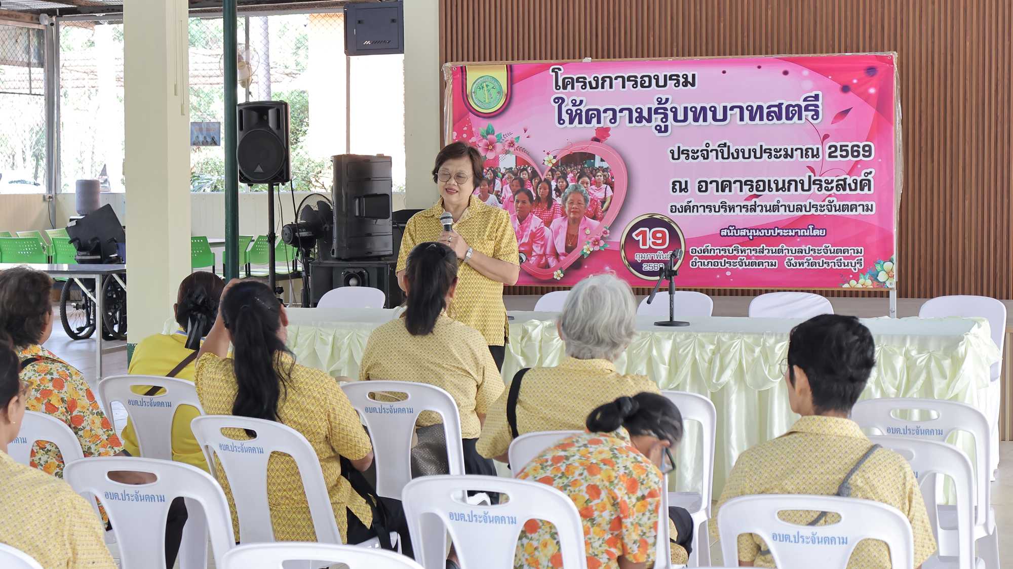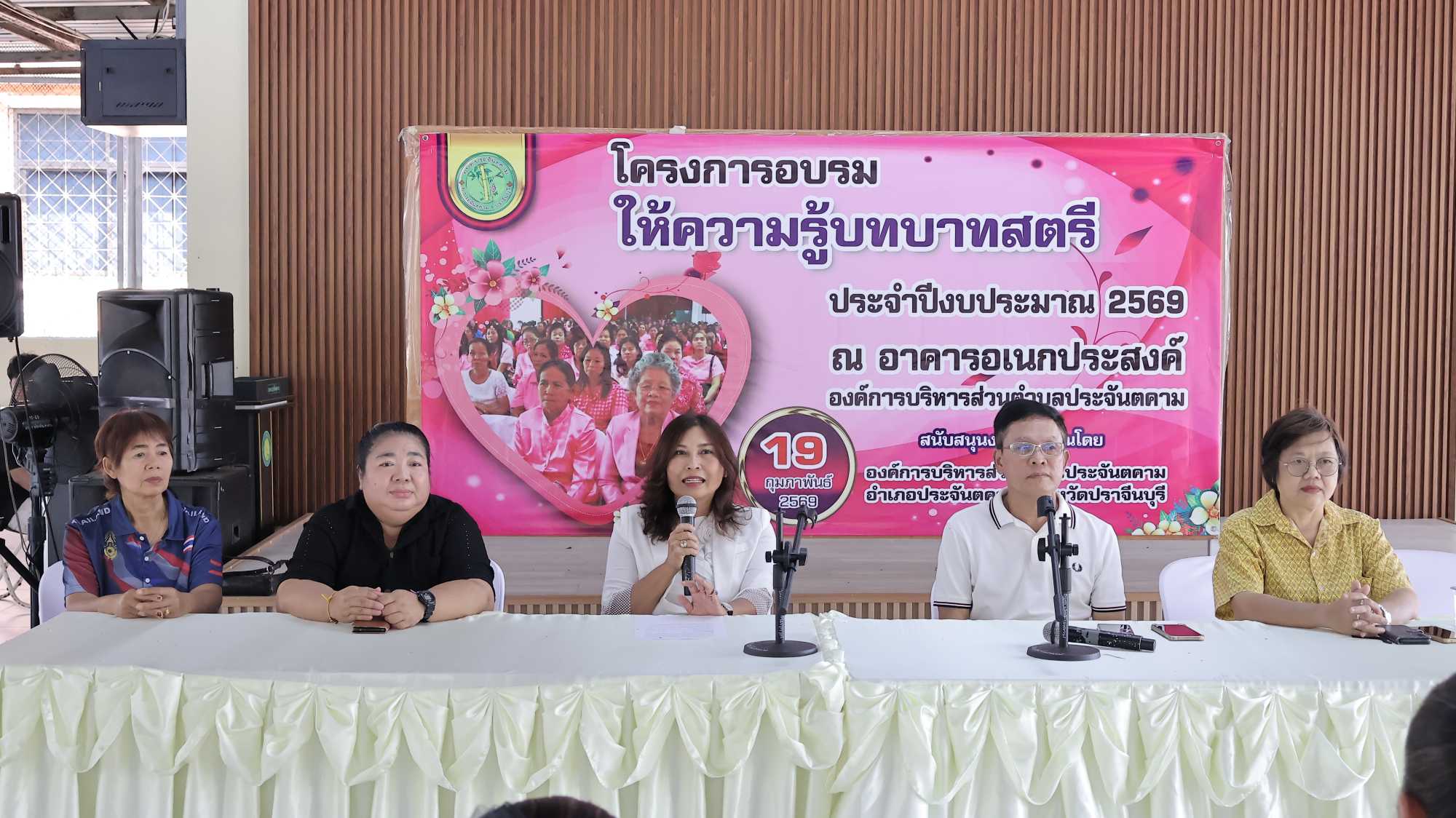 นางจรีพร โชติรัตน์ นายกองค์การบริหารส่วนตำบลประจันตคาม ร่วมด้วย พ.ต.ต.สมพร หลีกชั่ว รองนายกอบต.ประจันตคาม และ นางสาววรนิษฐ์ ดีจริง ปลัดอบต.ประจันตคาม ร่วมเป็นประธานในพิธีเปิด โครงการอบรมให้ความรู้บทบาทสตรี ประจำปีงบประมาณ 2569 ณ อาคารเอนกประสงค์ องค์การบริหารส่วนตำบลประจันตคาม อำเภอประจันตคาม จ.ปราจีนบุรี