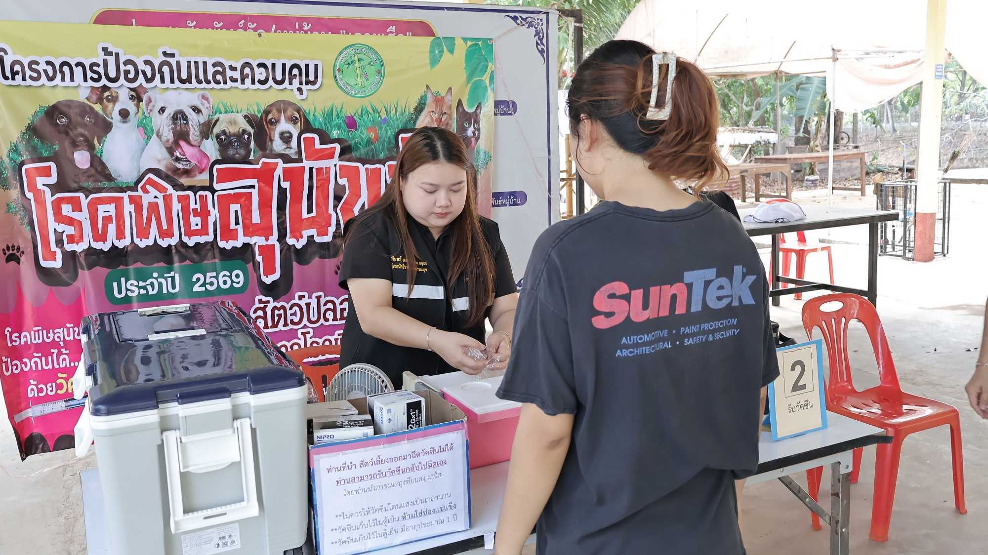อบต.ประจันตคามออกให้บริการฉีดวัคซีนป้องกันโรคพิษสุนัขบ้า