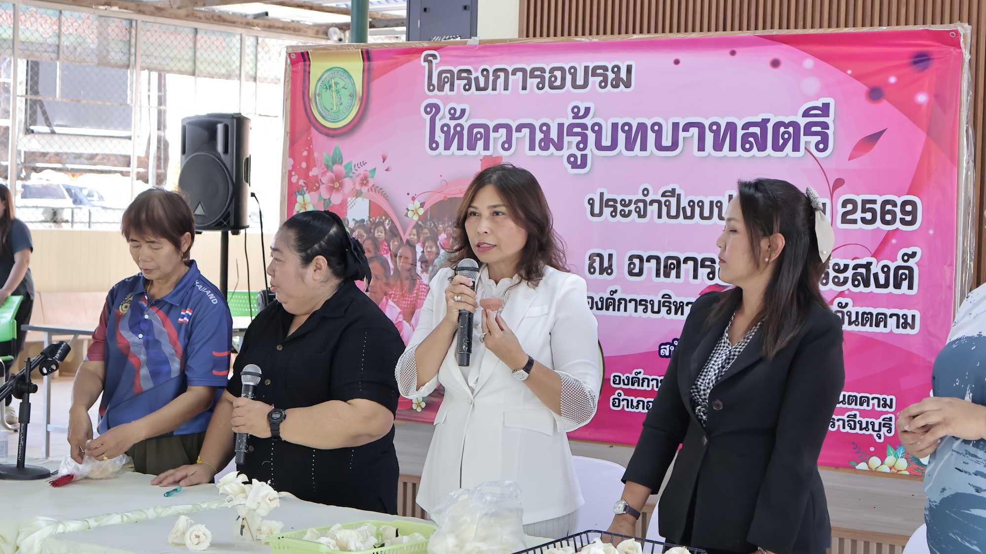 นางจรีพร โชติรัตน์ นายกองค์การบริหารส่วนตำบลประจันตคาม ร่วมด้วย พ.ต.ต.สมพร หลีกชั่ว รองนายกอบต.ประจันตคาม และ นางสาววรนิษฐ์ ดีจริง ปลัดอบต.ประจันตคาม ร่วมเป็นประธานในพิธีเปิด โครงการอบรมให้ความรู้บทบาทสตรี ประจำปีงบประมาณ 2569 ณ อาคารเอนกประสงค์ องค์การบริหารส่วนตำบลประจันตคาม อำเภอประจันตคาม จ.ปราจีนบุรี