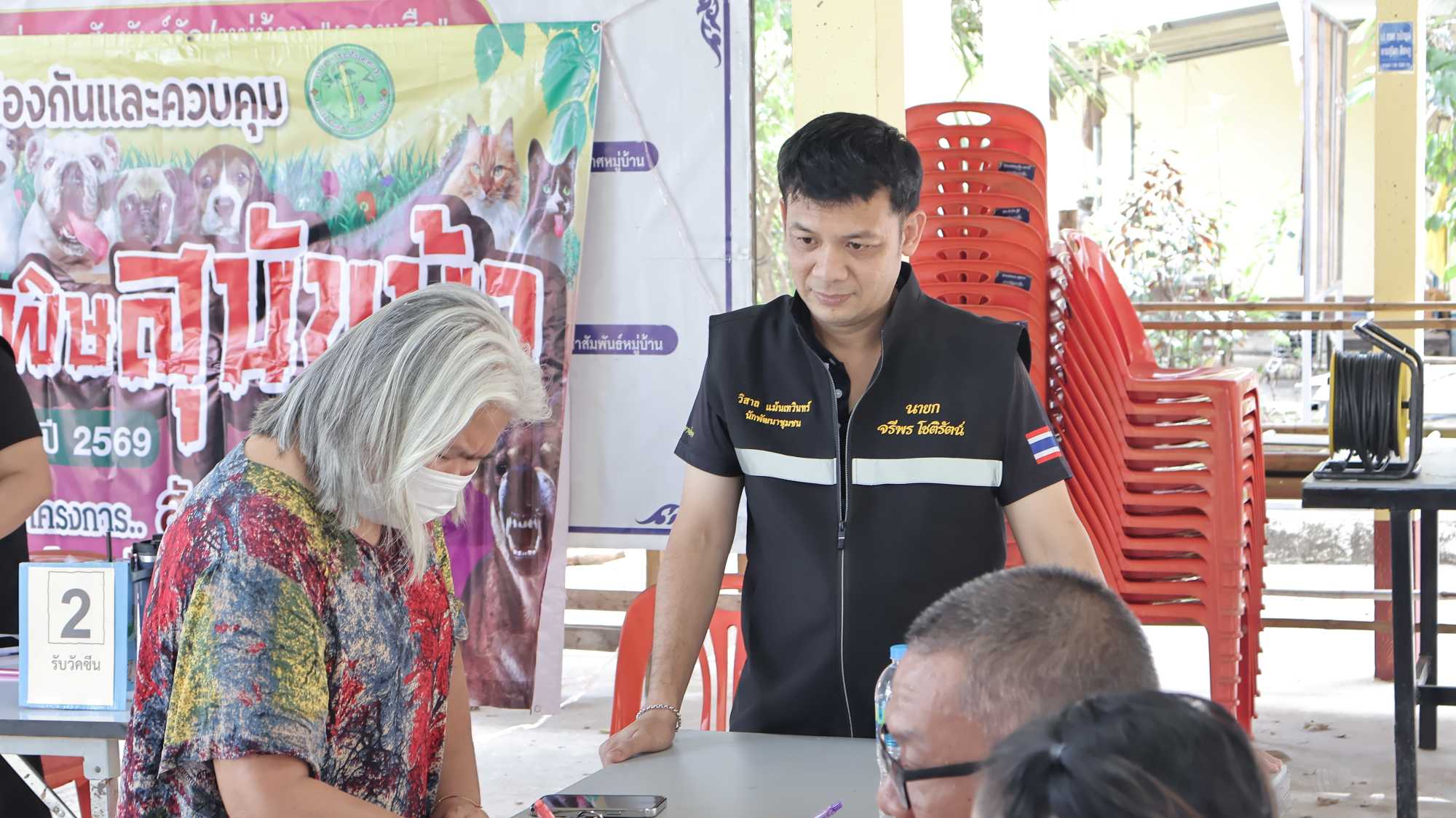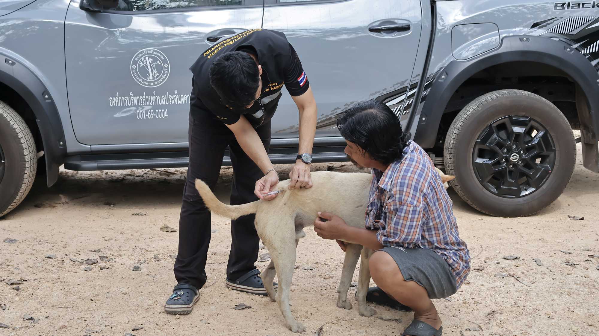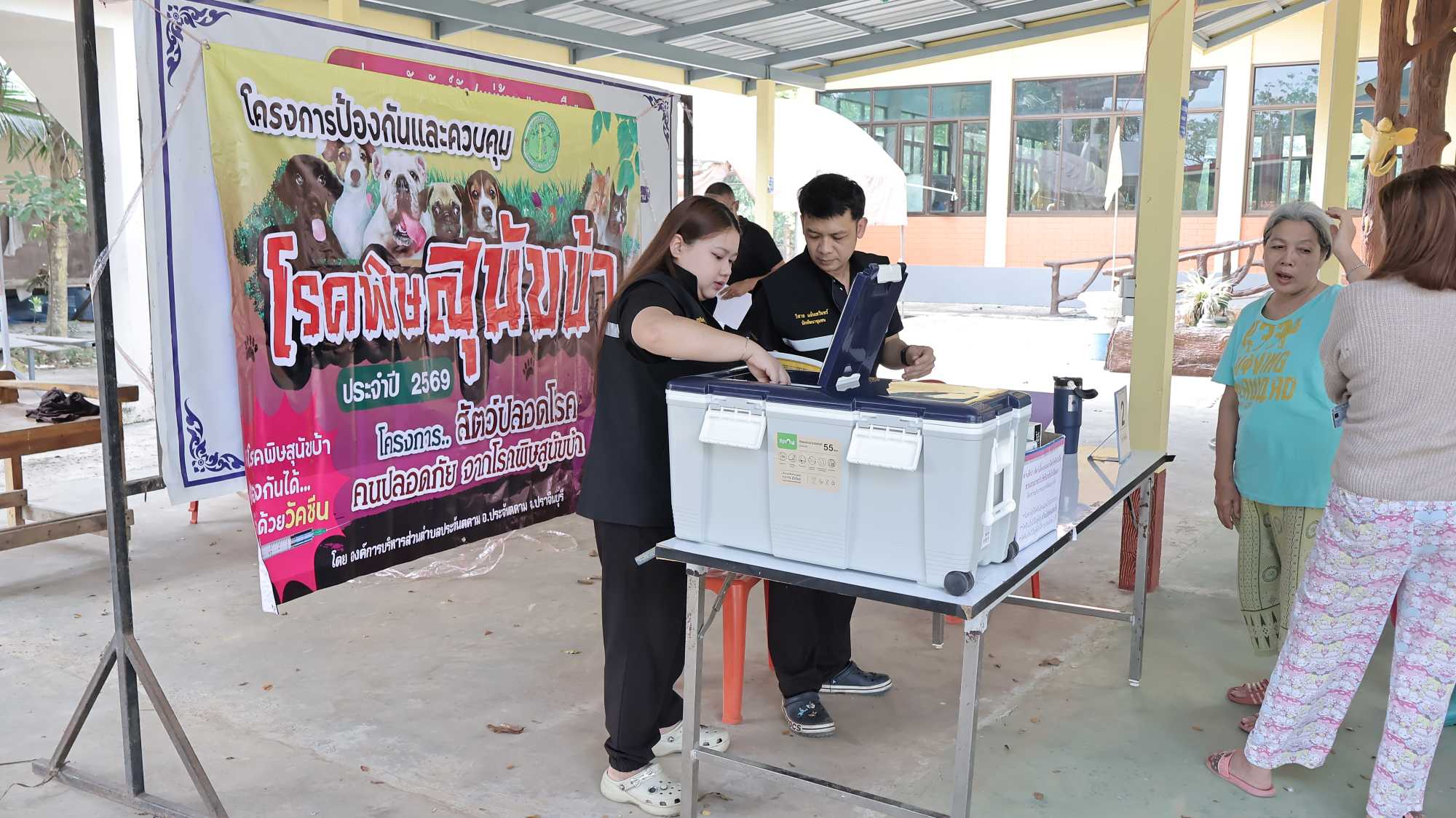 อบต.ประจันตคามออกให้บริการฉีดวัคซีนป้องกันโรคพิษสุนัขบ้า